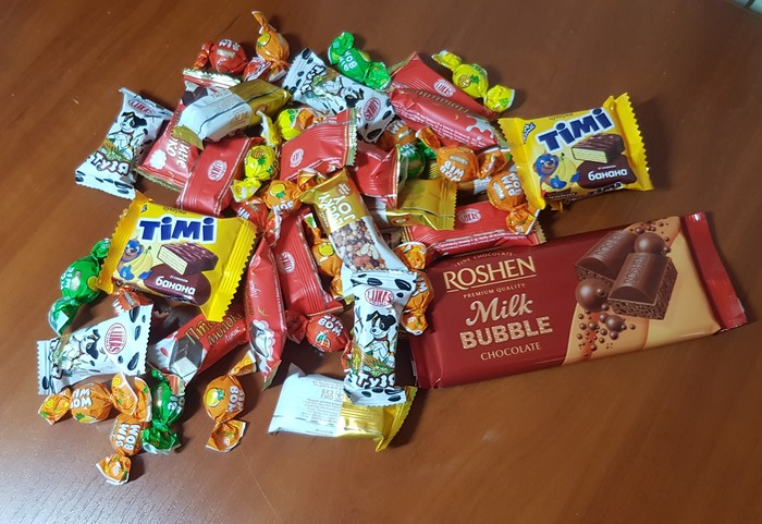 Ну и конечно же куда без сладостей, вот такая куча сладостей стало добавкой к моему экстазу, в новый год войду не без лишних килограмм :)