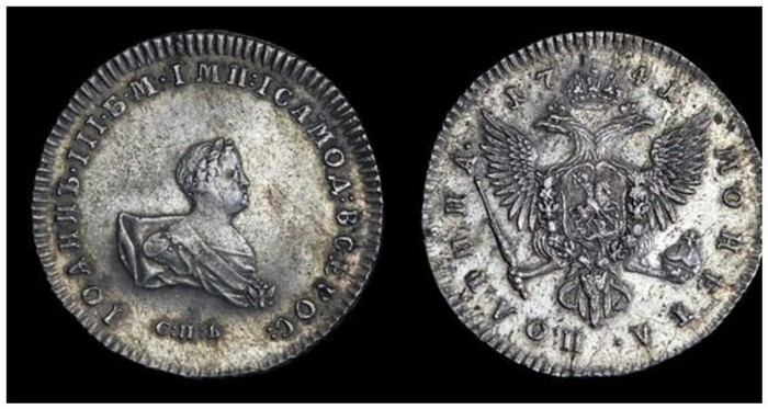 На втором месте — полтина Иоанна Антоновича 1741 г. - 310 тысяч у.е. (18 млн рублей)