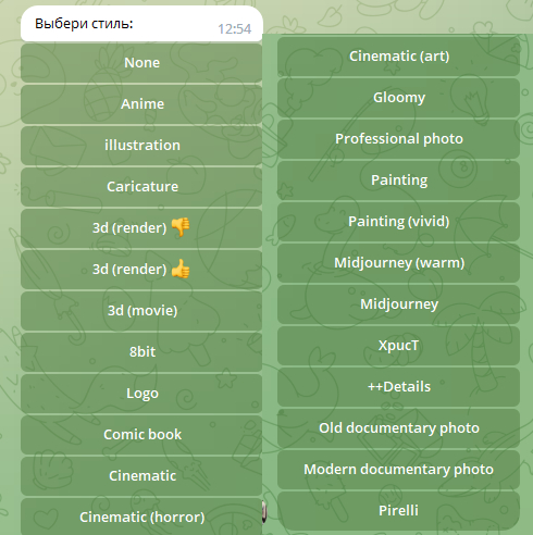 Можно писать на русском языке, бот переводит prompt на английский автоматически
