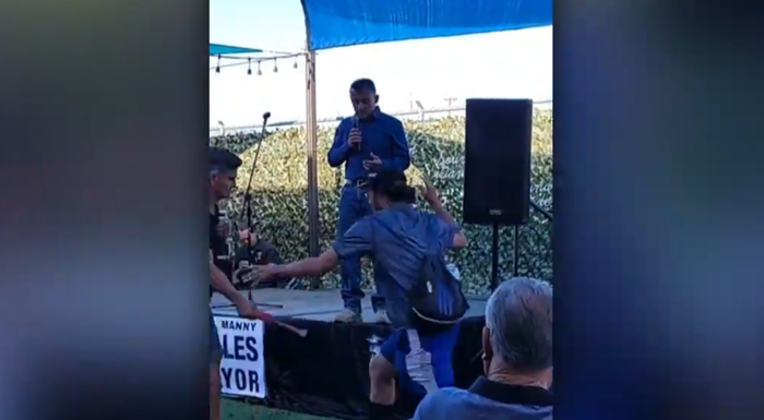Шериф Нью-Мексико, баллотирующийся на пост мэра Альбукерке, был прерван во время выступления на предвыборном мероприятии летающим дроном с прикреплённым к нему фаллоимитатором.