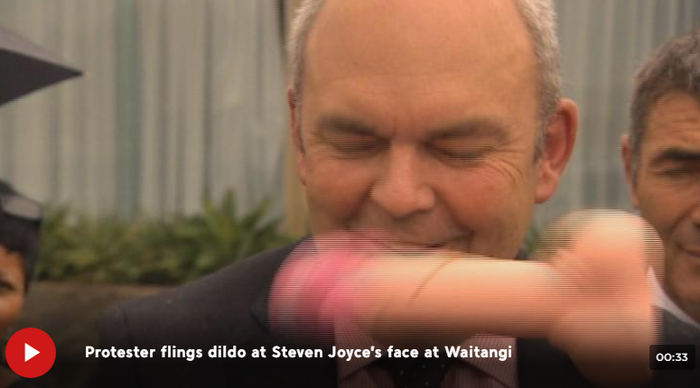 Не лучшим образом обстоят дела и в Новой Зеландии. В 2016 году министр экономического развития Стивен Джойс стойко перенёс удар по губам резиновым изделием. Правда высоких технологий здесь замечено не было - в него просто кинули.
