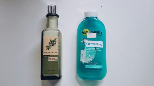 Слева направо: Тоник, сужающий поры TheFaceShop и Тоник против черных точек Garnier
