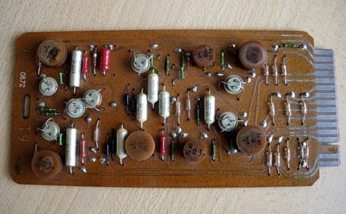 Чтобы вы представляли - ЭВМ Минск-32 представляла из себя кучу шкафов в рост человека, набитых платами, на которых были припаяны транзисторы, конденсаторы, сопротивления и другие электронные элементы. Плата выглядела вот так: