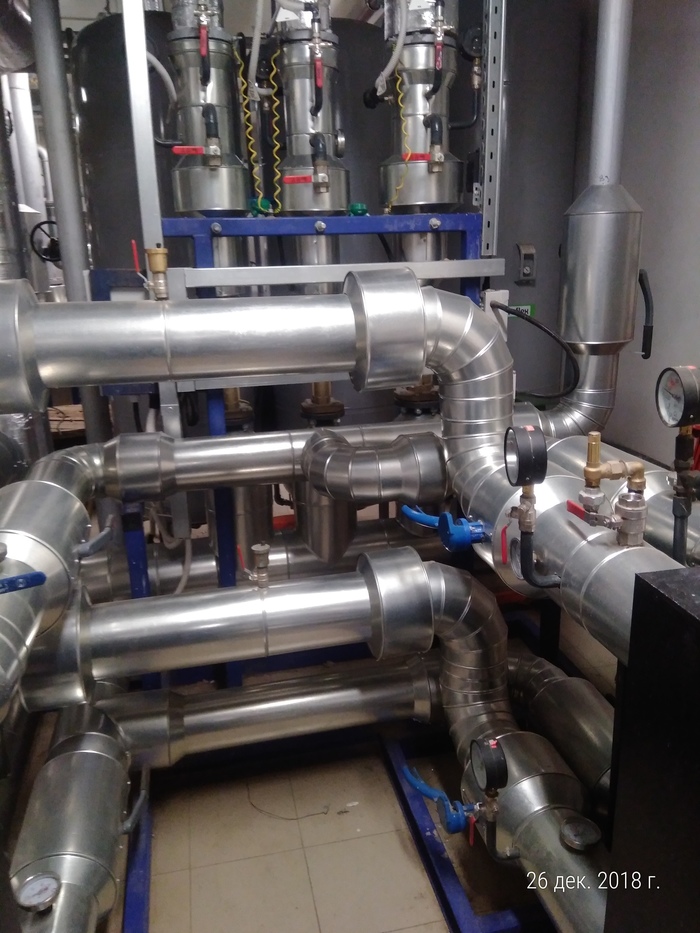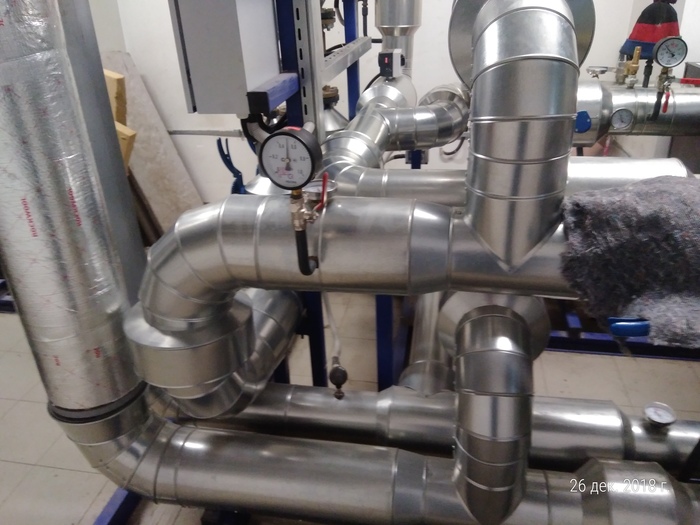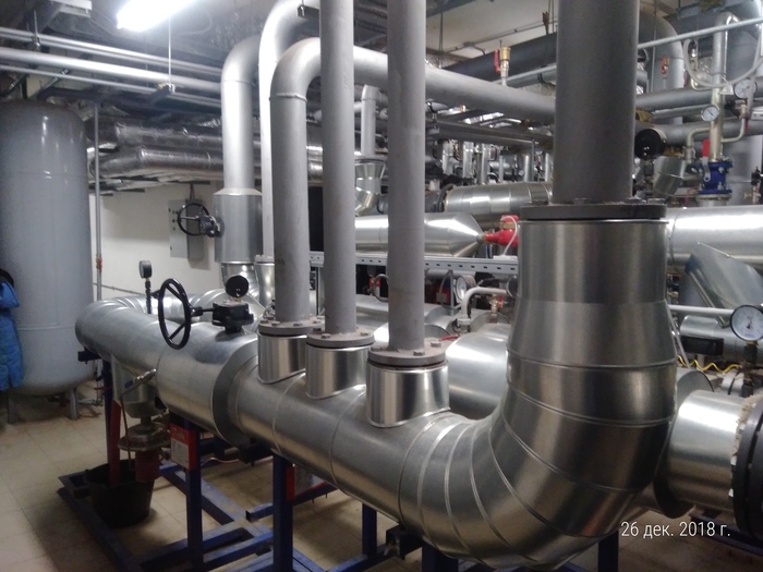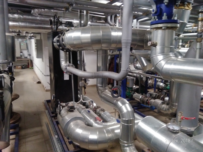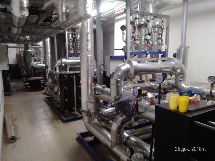 Это индивидуальный тепловой пункт в подземной парковке строящегося многоквартирного дома.