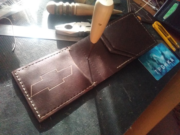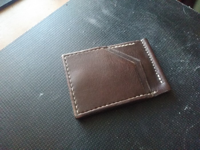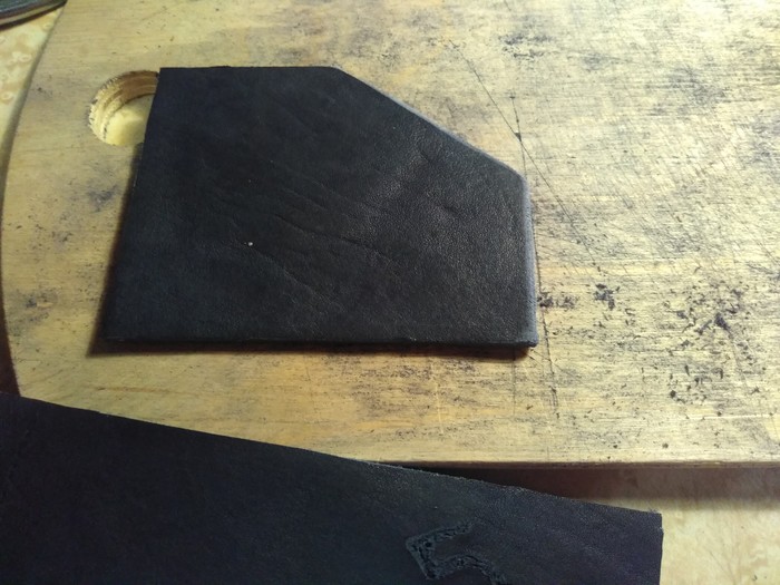 Так как первая попытка вид приобрела совсем неказистый, хотя и свежесшитым кошель выглядел не ахти, решено было попробовать ещё раз. Начитавшись пикабу, насмотревшись ютуба и слегка запинав свою лень я купил кусков кожи на вес; я ж учусь и большой отрез брать не вижу смысла.