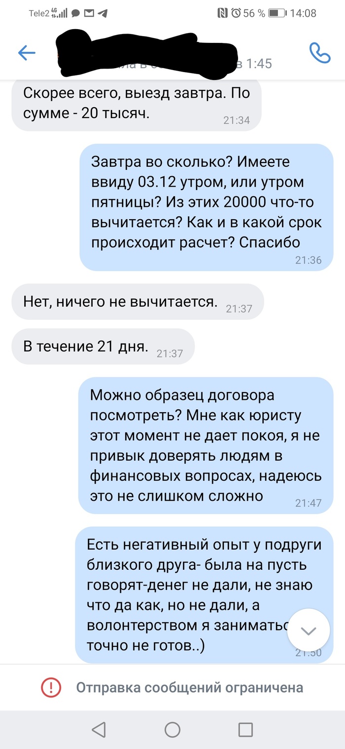 Поэтому снова задаю вопрос про документы/деньги и заранее выражаю позицию, что отношения наши сугубо деловые, а я не волонтер: