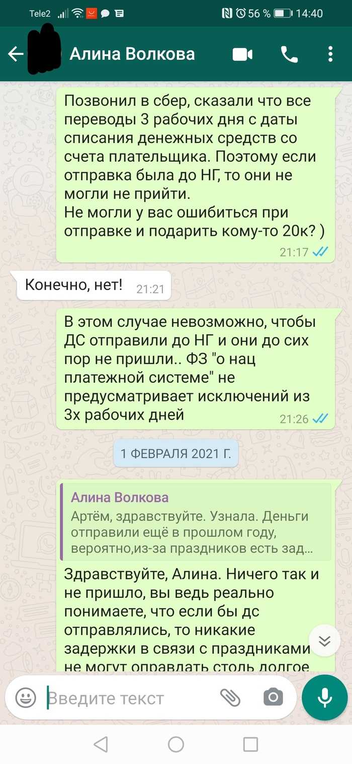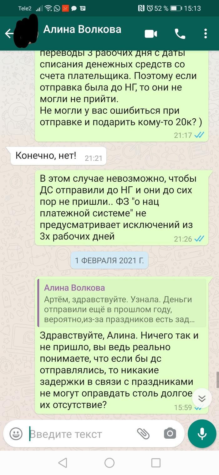 Проходит 21 день, пишем Алине 25 декабря, получаем ответ, ждем, пишем повторно уже после НГ 18 января(все в одном скрине):