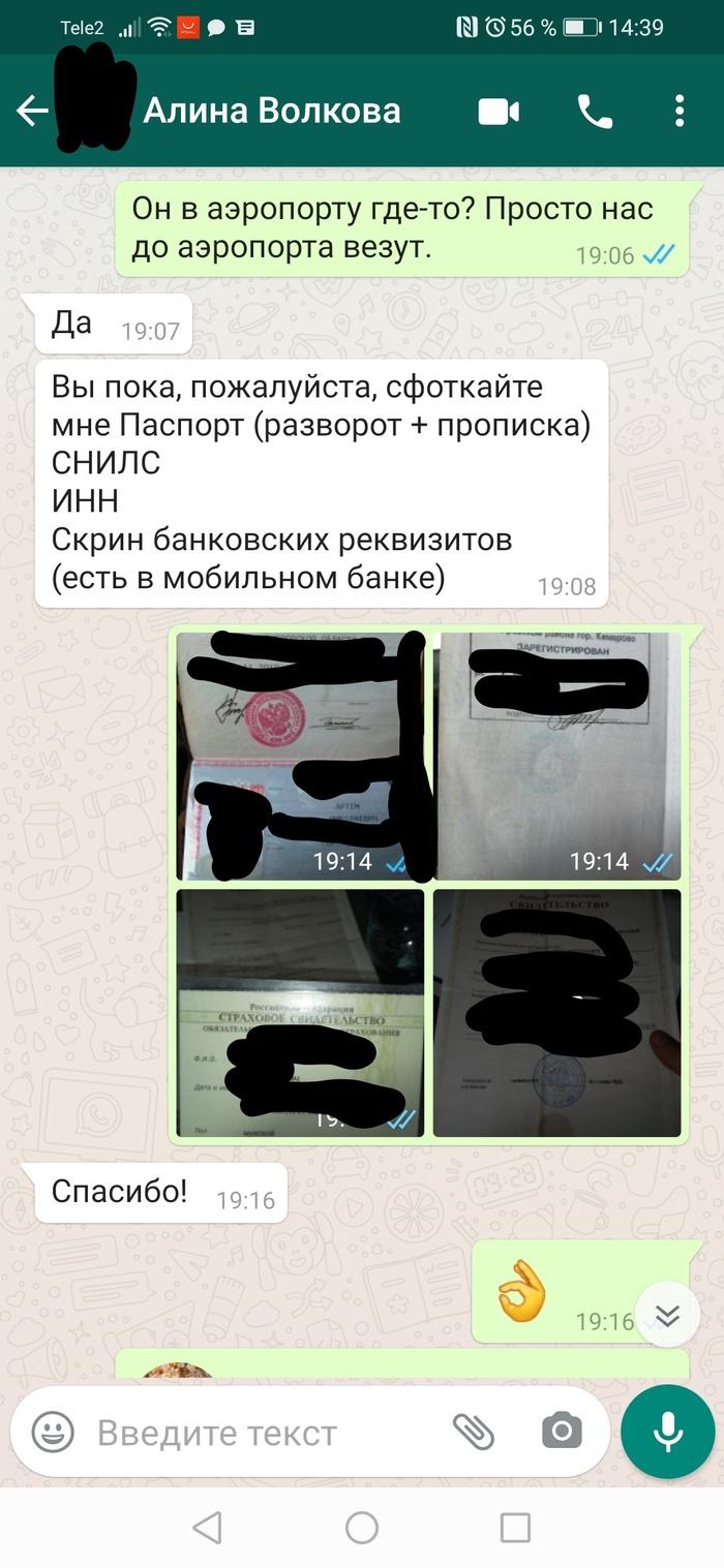 По дороге в аэропорт у меня запросили документы(СНИЛС,паспорт,ИНН,реквизиты для оплаты), которые я отправил опять же Алине.