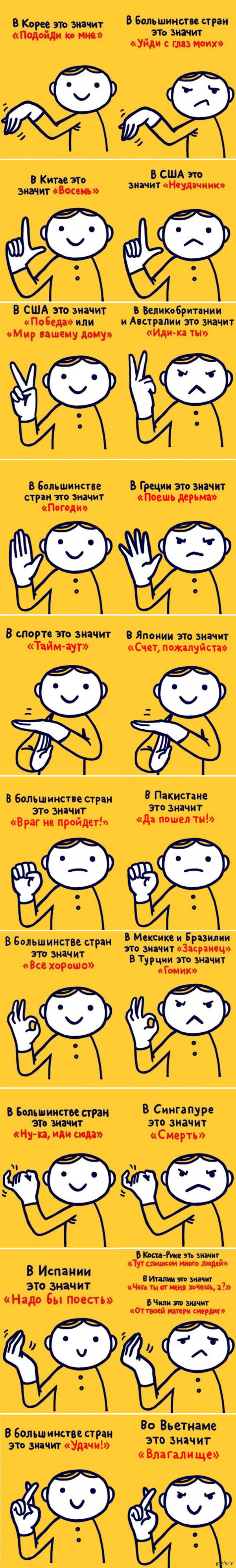 Bazuzel 10 лет назад Значение жестов в разных странах Показать полностью 1 Познавательно Жесты Страны Длиннопост
