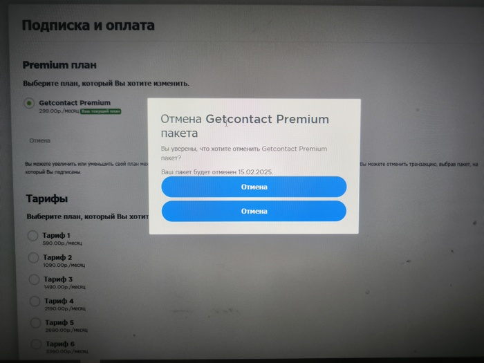 Далее видим нашу подписку выбираем её и снизу ищем серую надпись "Отмена", вылезет замечательное окошко из двух отмен..