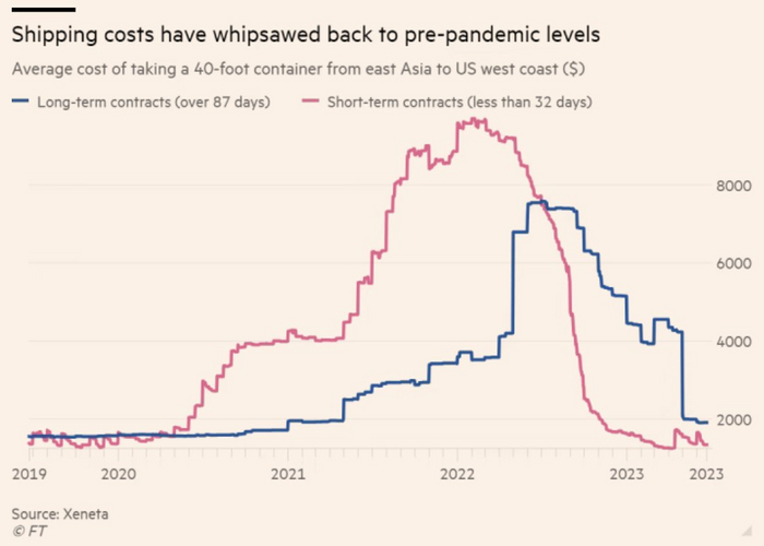 Стоимость морских грузоперевозок снизилась до предпандемийного уровня.