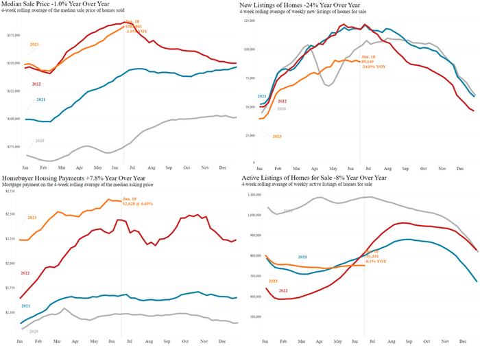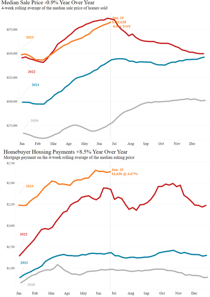 Медианная цена продажи дома продолжает расти - 382 861$. Скоро установит исторический хай. При этом платеж за дом медианной цены слегка снизился, хотя и находится у пика - 2 628$.