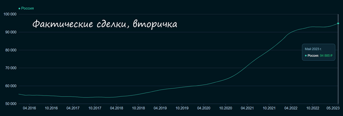 Вторичка и не останавливалась по большому счету - 94 885₽. Здесь также средняя цена по России.