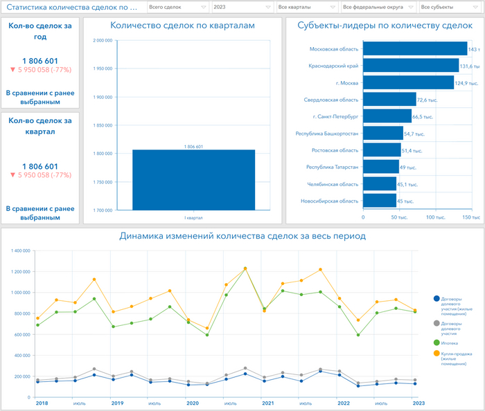 Россреестр дает нам следующую информацию о совершенных сделках.