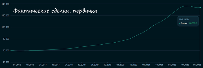 Первичка после небольшого снижения начала подыматься - 133 500₽ за квадратный метр. Средняя цена по России