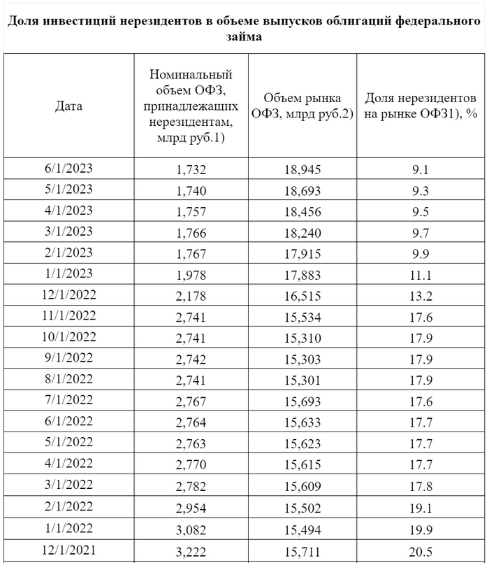 Доля нерезидентов в общем объеме ОФЗ снизилась на 0,2% до 9,1%.
