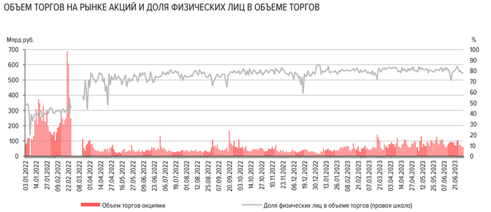 Июнь 2023 оказался самым богатым на объем месяцем с начала СВО на срочном рынке МосБиржи.