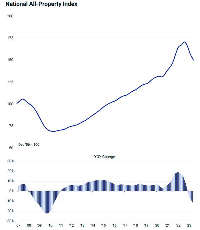 Там, оказывается, их индекс под названием RCA CPPI National All-Property Index гремит в тазу уж чуть ли не год подряд. За год потерял 11,2%. А с апреля к маю -1,2%. Индекс сей, как очевидно из названия, измеряет цены на коммерческую недвижку.