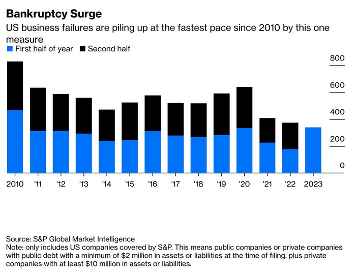 ...в США. Американский бизнес сталкивается с крупнейшей волной банкротств в течении первого полугодия. Таких результатов не было с 2010 года.