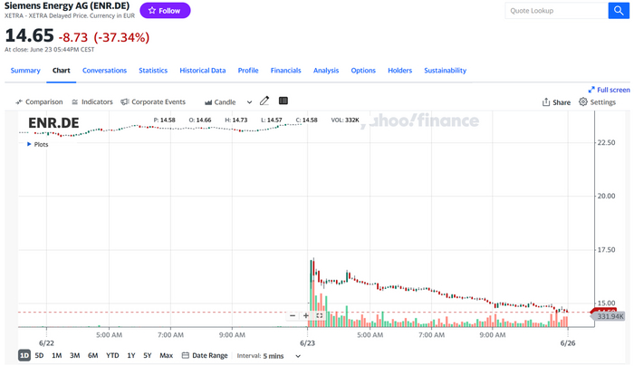 В пятницу поплохело Сименс Энерджи, немецкому производителю оборудования для энергетической отрасли. -33% с открытия. Вжух. И нет денег.