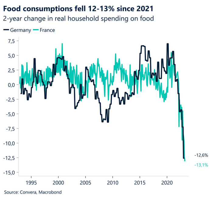 На графике 2-летнее изменение в расходах домохозяйств на покушать.
