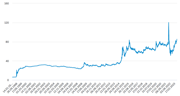 Т.е. пришли обратно к плюс-минус стандартным банковским +5% к курсу.
