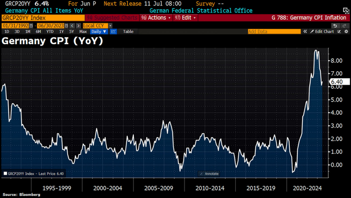 Гармонизированный индекс потребительских цен (инфляция, приведенная к европейским правилам расчета) по итогам июня выдал +6,8% годовых. Предыдущий результат: +6,3%.