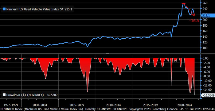 Есть такой индекс - Manheim Used Vehicle Value Index - Индекс стоимости подержанных автомобилей Manheim, являющийся отраслевым ориентиром, представляет собой показатель оптовых цен на подержанные автомобили.