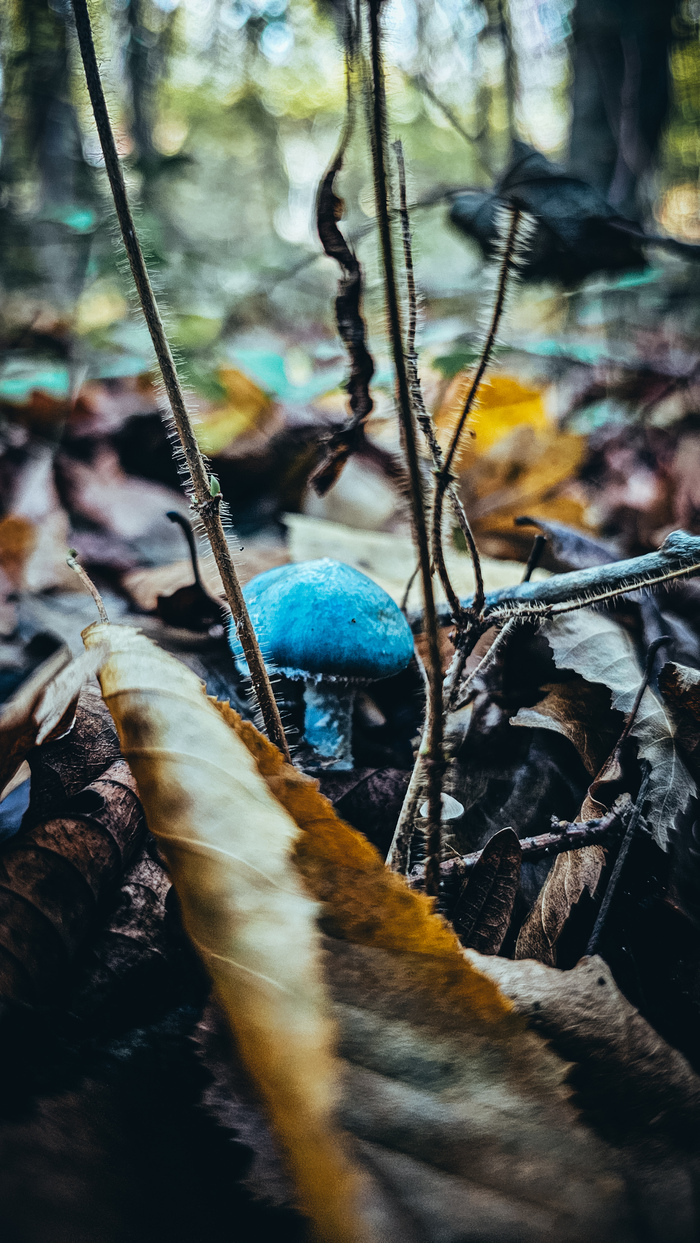 А вот, кстати, строфария сине- зеленая. Часто ее встречаю, но только в этот раз решил узнать съедобность. Оказалось, не смотря на свою внешность, вполне съедобный гриб. Пробовать не стал конечно же