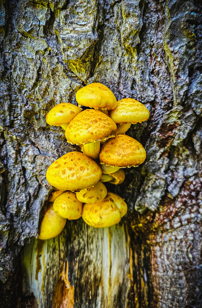 Или дождевики, куда без них в сыром лесу. Или чешуйчатка золотистая или ежовик желтый