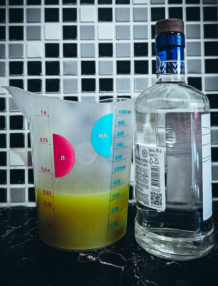 Водяйра 400 (берем хорошую, любимую. Можно сэм или спирт но граммовки поменяются или белый ром)