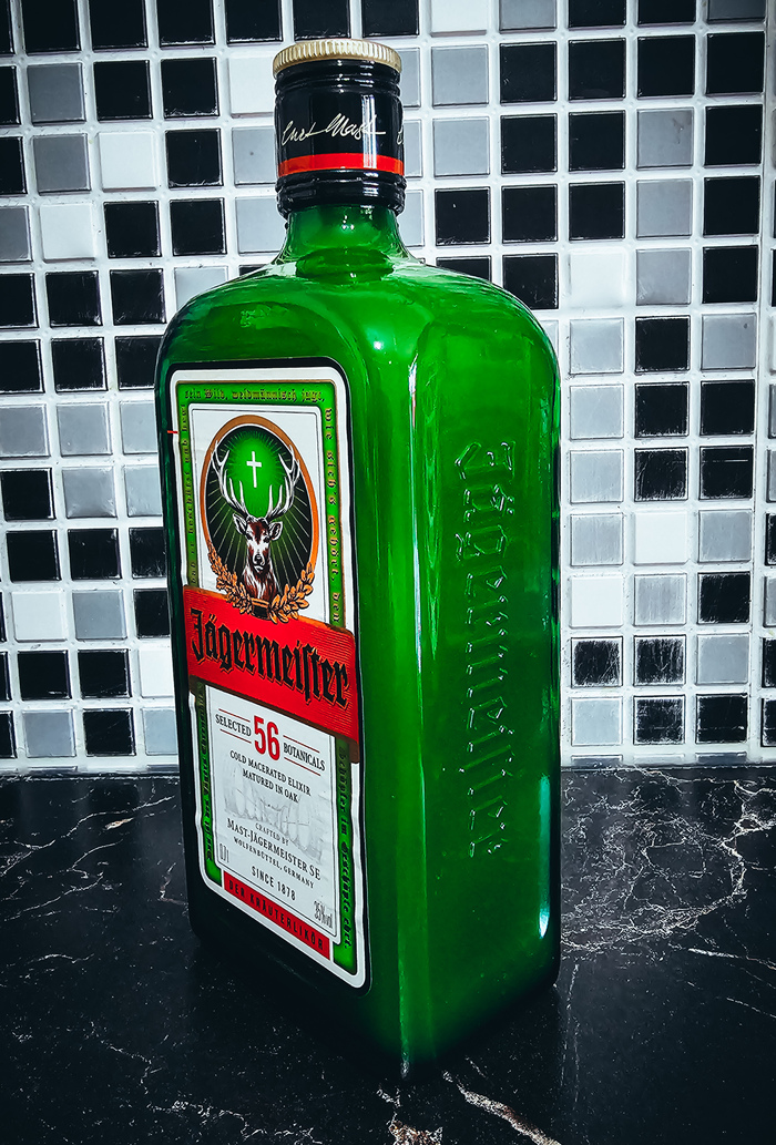 Разливаем в тару. Зеленому ликеру - зеленую тару(ни одной свободной бутылки кроме этой не нашлось)