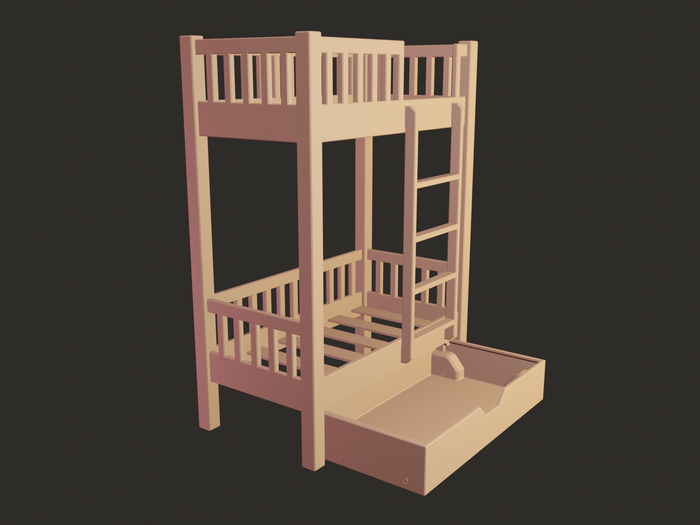 Итак, было принято решение смоделировать целую серию кукольной мебели для формата 1:12 (например для кукол LOL и аналогов). И начало было положено моделированием двухъярусной кровати (надо же где-то спать кукляхам?).