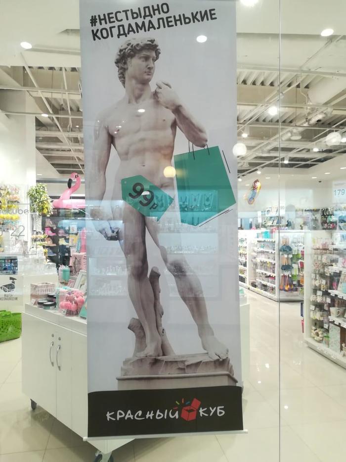 Не знаю, какая именно цель стоит перед маркетологами нашей преКрасной сети, но на этот раз они не побрезговали покуситься на святое и к известным скульптурам приделали двусмысленные хэштеги дабы приманить к себе покупателей. Последние кстати пока не выкупили происходящее, по крайней мере очередей не заметил. Но, глядишь и сработает — у нас же народ любит шутки «ниже пояса».