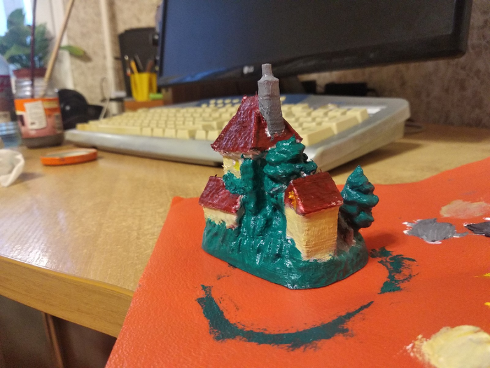 Напечатано на 3Д принтере, покрыто белой акриловой грунтовкой и раскрашено масляными красками кривыми руками художника от слова "худо"