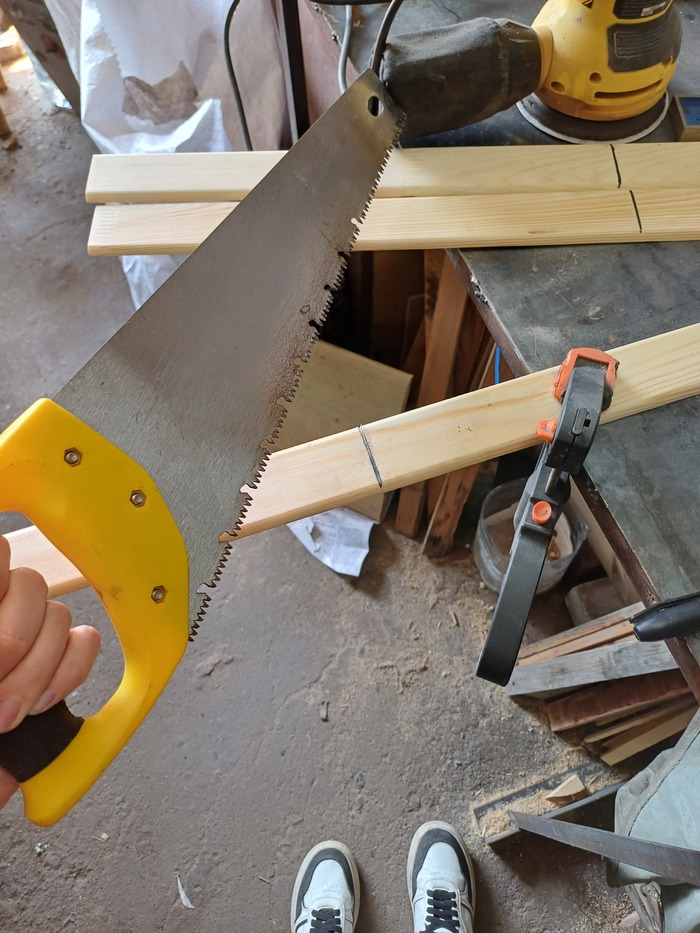 Размечаю 3 детали по 40 см и не щадя живота своего пилю их здоровой такой пилой.