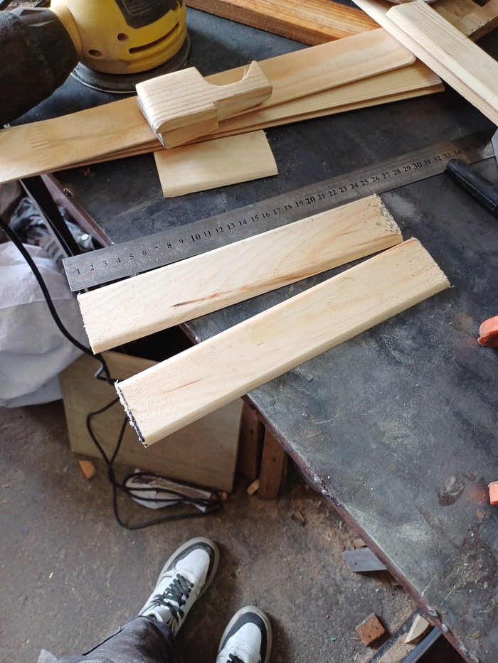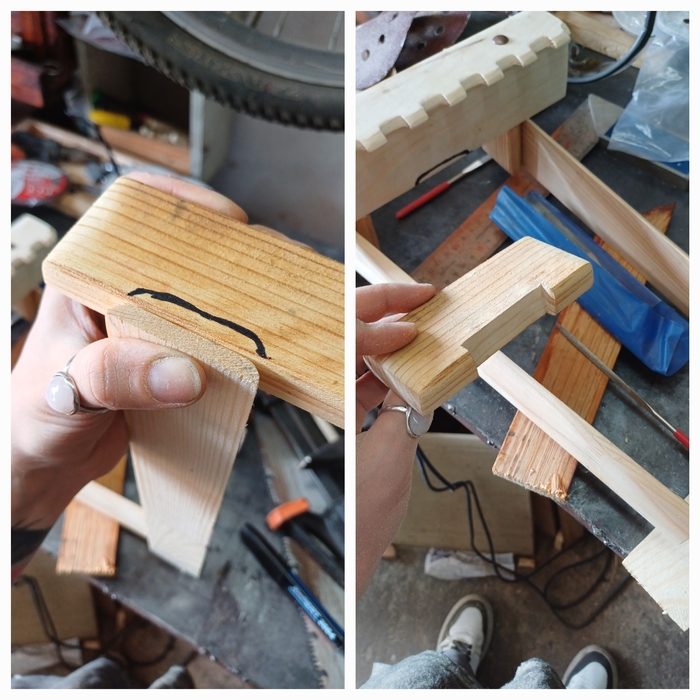 С помощью этих деталей я планирую крепить "полочку", на которую буду ставить холстики. Поэтому, бумажно подумав, делаю паз. Сейчас пока ничего не ясно, но в моем регионе давно не идут затяжные дожди, так что прояснится.