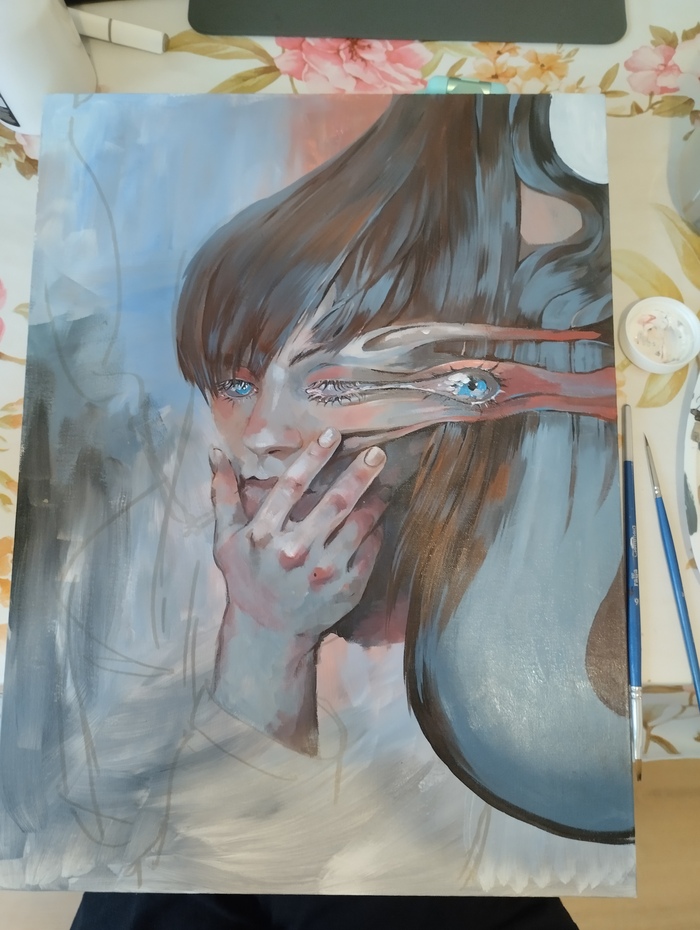 Записывать видосики становится всё проще. Но, наверное, стоит задуматься о настольном мольберте. Потому что из-за штатива я не могу упереться носом в процесс, как обычно.