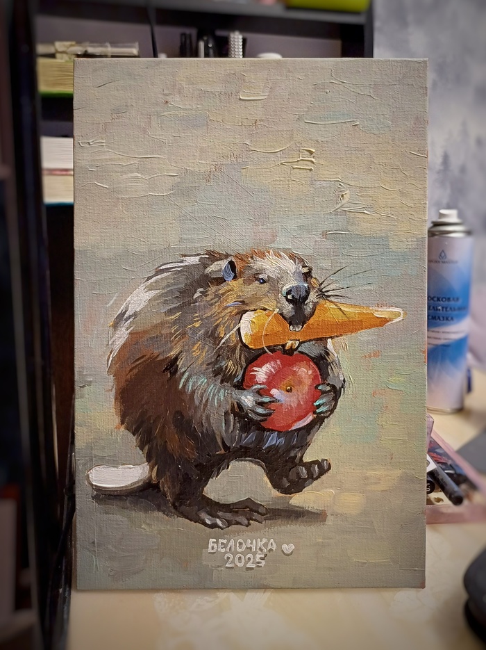 Никогда не рисовала особо на маленьких холстиках, тем более животных. Но на этой неделе как-то пошло. Радуюсь и веселюсь как ребёнок.