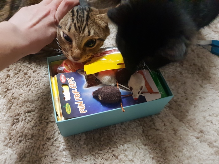Но нас ждет вторая коробочка... А в ней были мышки для моих котанов! Простите, нормально сфоткать не получилось...котанам срочно нужны были мыши!