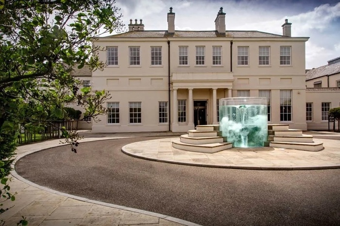 Один из самых необычных фонтанов в мире расположен в городе Сендерленде, на площадке перед отелем Seaham Hall Hotel. Он представляет собой прозрачный акриловый цилиндр высотой 2,3 м и диаметром 2,4 м, наполненный водой.