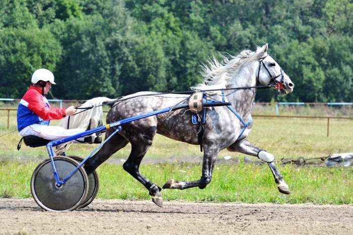Гордость России! Эта гармонично сложенная, прыткая, высокая порода никого не оставляет равнодушным. Рост в холке может варьироваться в пределах 157-170 см. Скачка на резвой рыси – генетически заложенная способность этих скакунов. Характерной чертой породы можно назвать ее масть – серая в яблочках. Также весьма примечателен лебединый изгиб шеи и горделивая осанка орловского рысака. Характер этих животных спокойный и дружелюбный, но это никак не мешает им оставаться очень энергичными при участии в бегах. Порода широкоуниверсальная, может использоваться и для верховой езды, и для упряжи и в хозяйстве помощником будет. А вот для серьезных скачек выводится порода Русских рысаков, предназначенных специально для участия в соревнованиях.