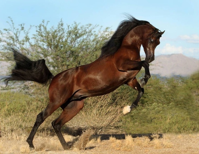 Отменное здоровье и выносливость - причина по которой он является самой популярной породой среди селекционеров и заводчиков. Родина лошади – Аравийский полуостров, где в течение столетий происходило формирование экстерьера скакунов.