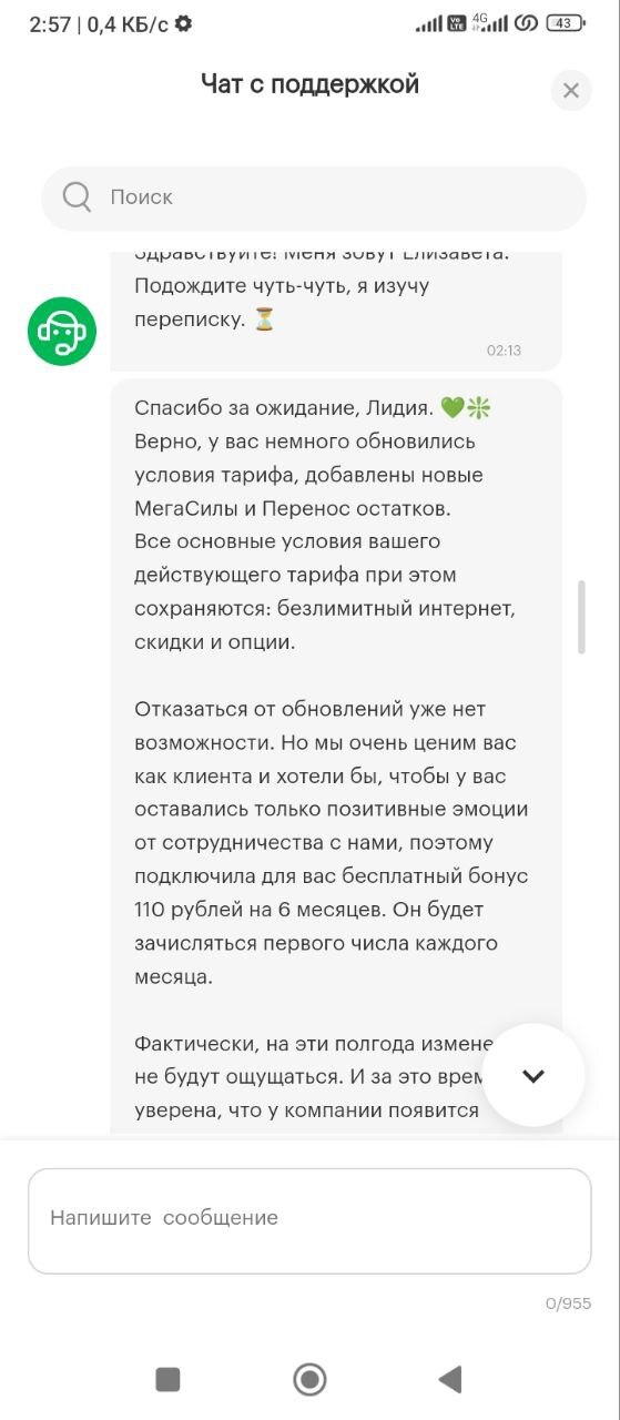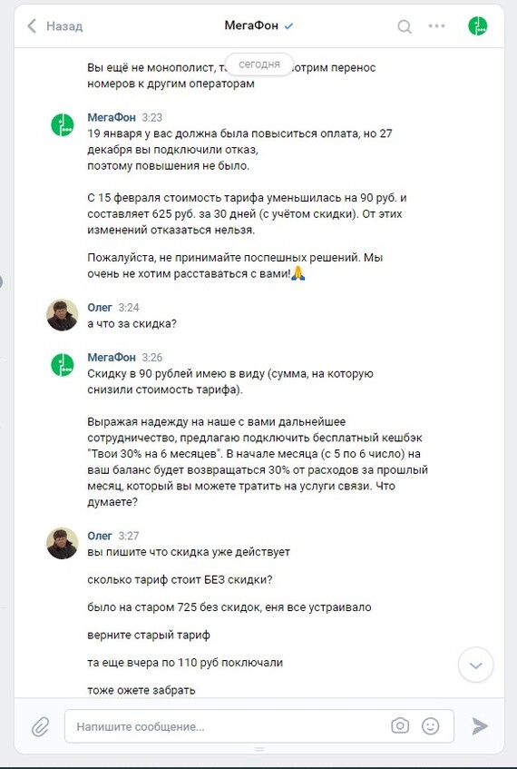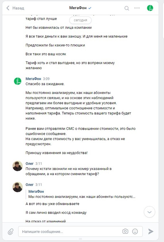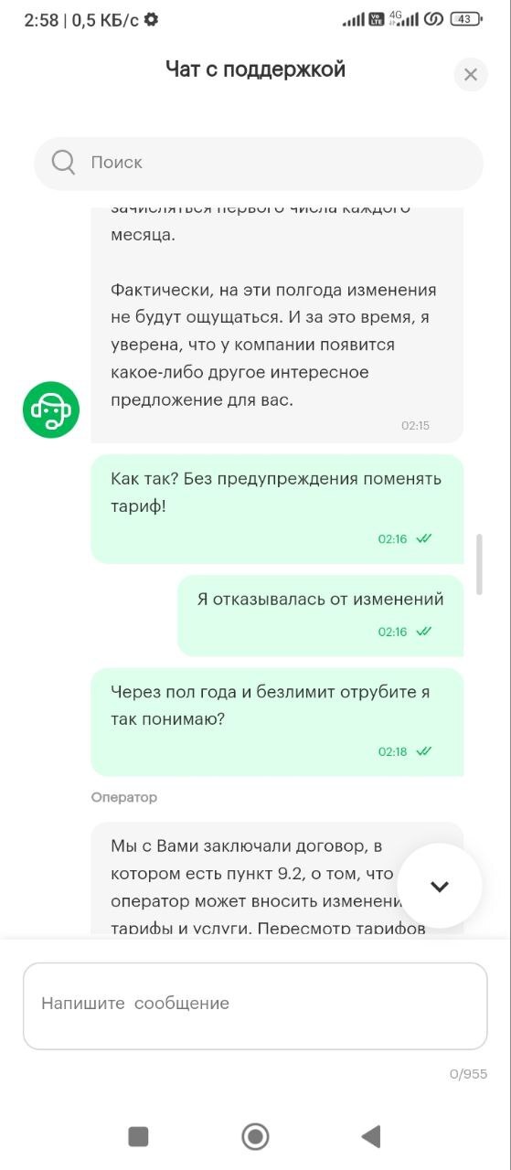 На мой вопрос почему сменили тариф без разрешения (помним ведь что я отказался от смены ) твердила как заведеная что тариф стал лучше и дешевле. На мои возражения что я хотел платить БОЛЬШЕ! опять про то что тариф стал лучше.
