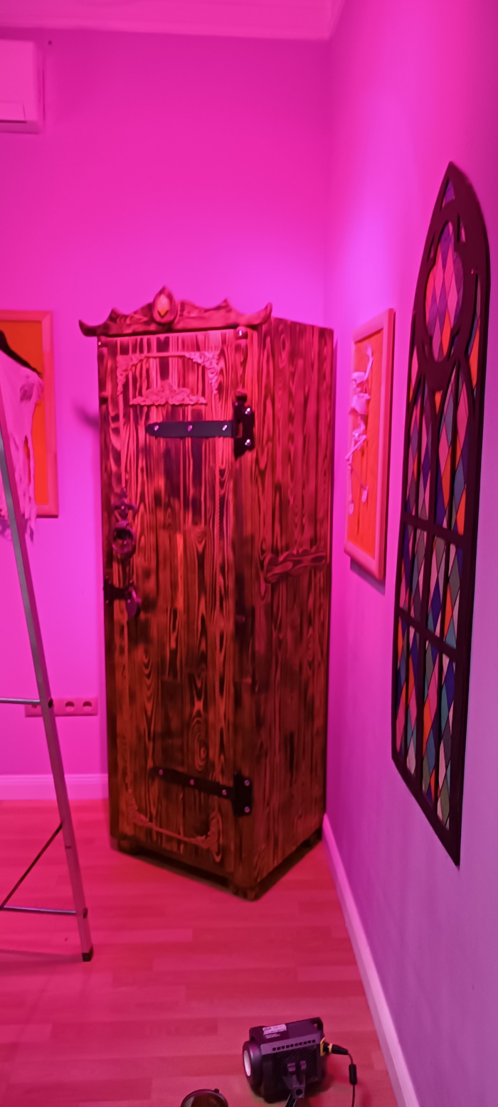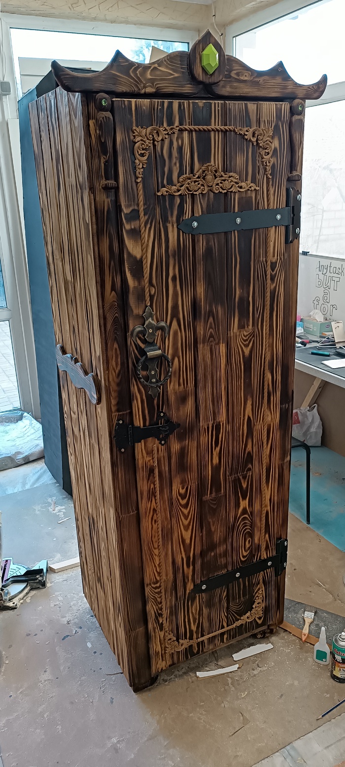 ТЗ: -ну надо шкаф типа франкенштейна или как та из семейки Адамс ну какой то такой, размер ну так небольшой что бы в дверь проходил и легкий что бы переносить легко.