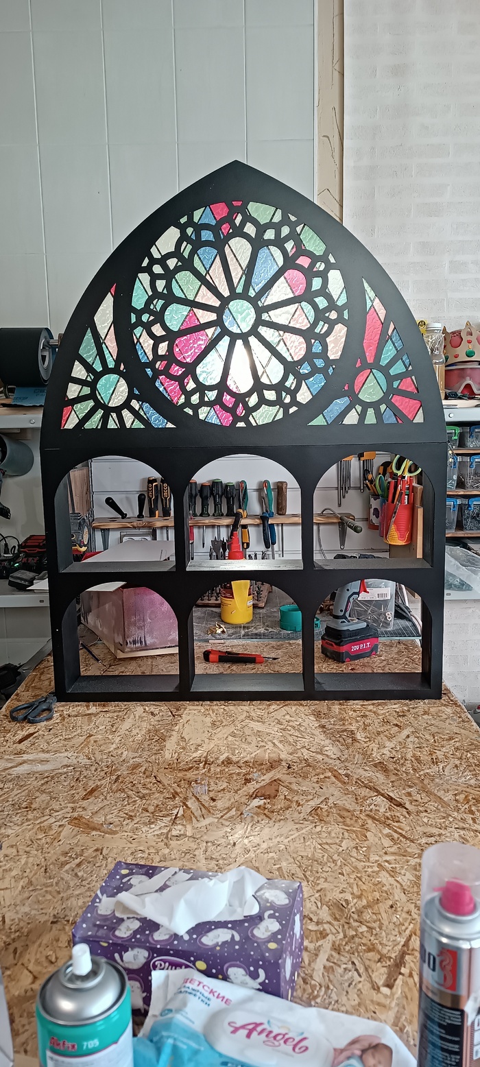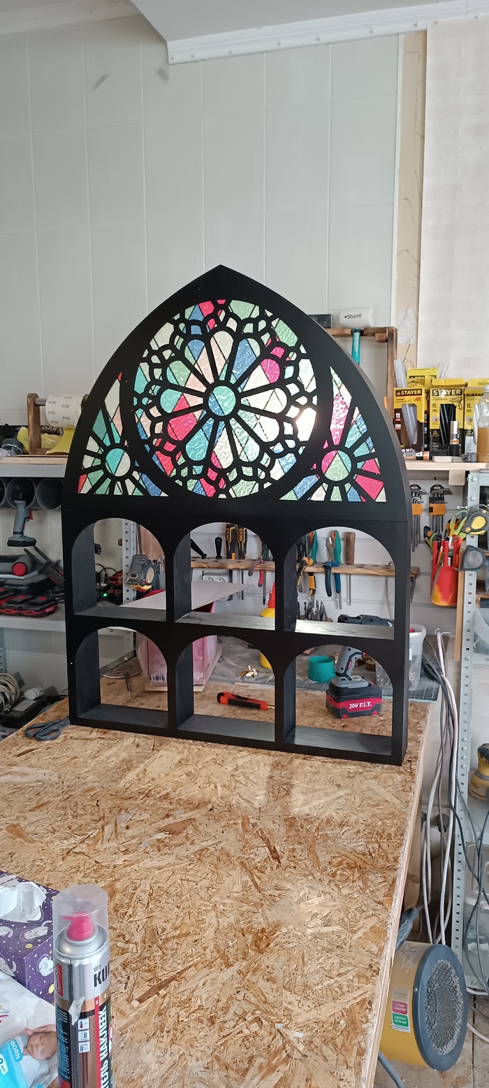 Ну и вот такая полка еще до кучи. Тут ничего особо сложного, макет в кореле нарисовал, лазером порезали да в одно единое сляпали.
