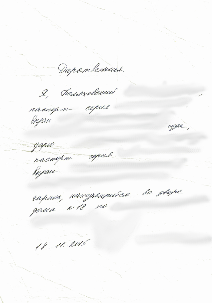 Вдовесок она приложила также от руки расписку, по которой гараж ей подарил её отец.