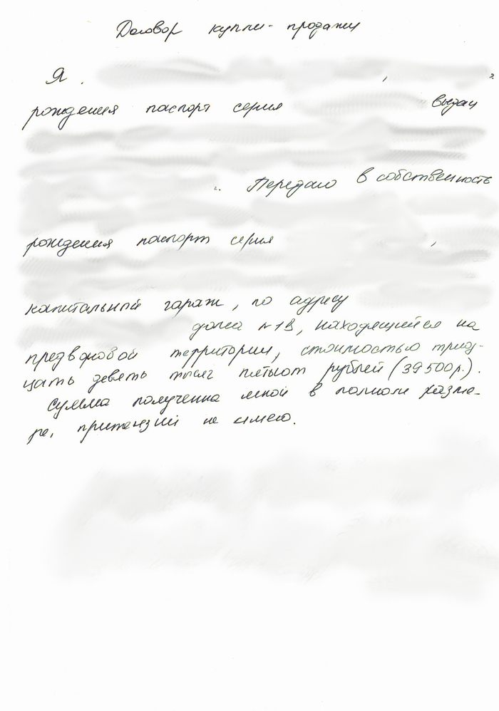 Гараж покупался по расписке у девушки, с указанием моих и её фио и паспортных данных и суммы продажи.