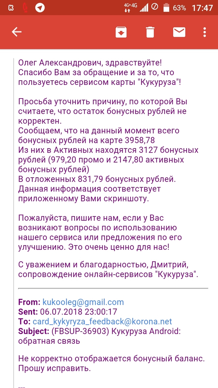 Добрый день пикабушники. У меня горит и бомбит. Давным давно пользуюсь картой "кукуруза". Самой главной плюшкой карты, считаю (считал) накопление бонусов, которые якобы можно будет уверенно просаживать в салонах " Евросеть". На 05 июля сего года, я скопил 39122,87 баллов, что ровняется 3912 руб. Эти баллы делятся (делились) на активные и отложенные, активных было 31270, отложенных соответственно все остальное.