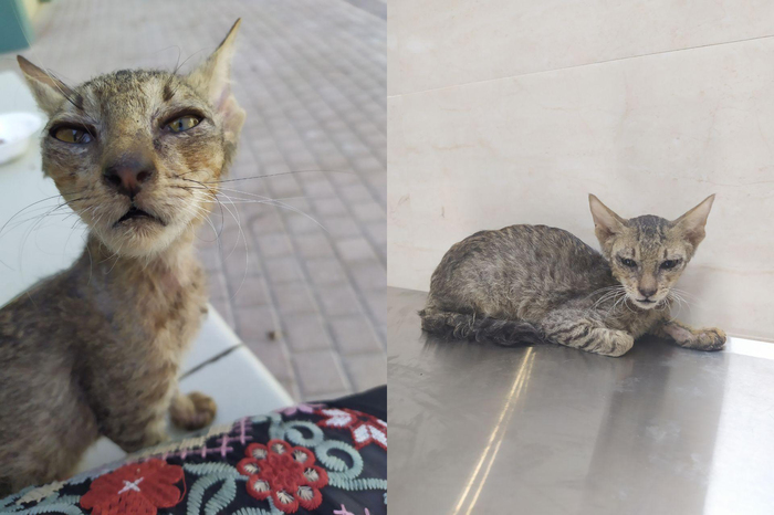 Среди них было 7 котят, и 2 очень больные. Я не знала тогда, куда можно обратиться, как им помочь, попросила о помощи в местных группах. Одна женщина помогла мне с поимкой и транспортировкой больного котенка (к сожалению, второй умер).